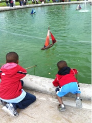 The children played, laughed, and met tourist from all over the world. They also played with boats in an enormous fountain near the Louvre, and played in the many kid friendly gardens we passed.